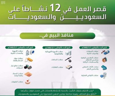 أخبار إقتصادية > وزير العمل السعودية يصدر قرارا بقصر العمل على السعوديين والسعوديات لـ 12 نشاطا ومهنة > 000-9762214281517168353064
