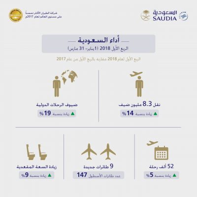 أخبار إقتصادية > “السعودية” تحقق قفزة جديدة في أعداد المسافرين وتسجل نمواً بنسبة (14%) خلال الربع الأول لعام 2018م > thumbnail_180411 SV 2018 Q1 Performance-approved_vv copy 8