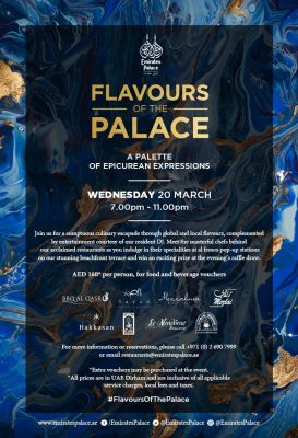 سياحة وسفر > قصر الامارات يطلق امسية ” نكهات من القصر ” يوم 20 مارس > thumbnail_Flavours of the Palace – 2019