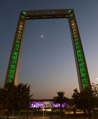 General images of Dubai celebrating the National Day of KSA Kingdom of Saudi Arabia at the Frame in Dubai. September 23, 2020. Photo by Xavier Wilson