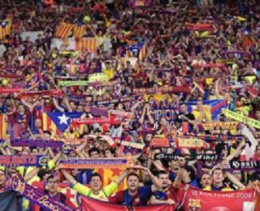 وهو ملعب كامب نو الذي تم تدشينه عام 1957 وبدأ بطاقة استيعابية حينها قدرت ب90 ألف متفرج قبل أن تبلغ 99 ألف متفرج في الوقت الراهن.[7] لا تقتصر مساندة الجماهير للنادي في معقل النادي الكاتلوني ملعب كامب نو الذي يتسع لحوالي 99 ألف متفرج ويبلغ متوسط الحضور الجماهيري 80 ألف مشجع في المباراة الواحدة،[8] بل تتعدى ملعب الكامب نو لاي ملعب آخر يحل فية نادي برشلونة ضيفًا، سواء كان في إسبانيا أو خارجها، ومن المباريات التي شكلت فيها الجماهير عامل هام للنادي