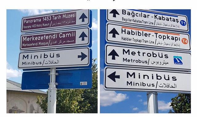 بلدية اسطنبول تضيف اللغة العربية على اللافتات الارشادية في الشوارع بعد 90 عام من ازالتها عقب الغاء الخلافة الاسلامية