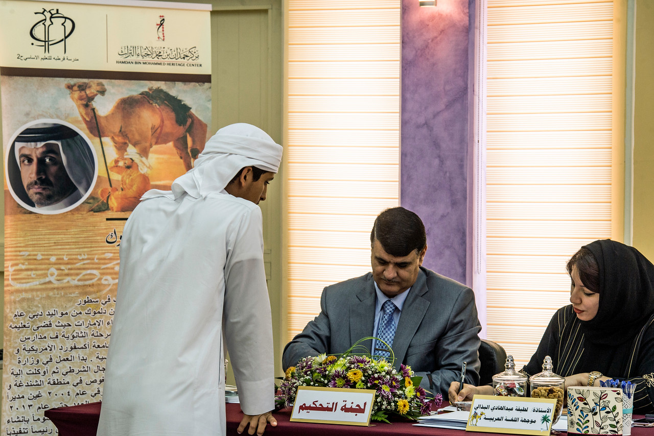 من جهتها قالت شريفة أحمد معلمة اللغة العربية فيمدرسة أبو حنيفة للتعليم الأساسي للبنين ح1: “لقد ادرجنا خلال الدورة الثانية من المسابقة طلاب وطالباتالمرحلة الثانوية وفي هذه الدورة، فتحنا باب المشاركة أمام طلاب وطالبات الحلقة الأولى – من الصف الأول وحتى الخامس. وجاءت هذه الخطوة بعد أن لاحظنا الإقبال الواسع من المشاركين في العام الماضي. وفي هذه الدورة سجلنا حتى الآن نحو 200 طالب وطالبة، ممن تم ترشيحهم للمسابقة من مدارسهم، وتعود نسبة الزيادة إلى تقسيم كتاب المتوصف وفقاً للمراحل والصفوف، من الأصغر سنا وحتى الأكبر، مما يساعد الطلبة على الاستيعاب والفهم وفقاً لمرحلتهم التعليمية. فالهدف الرئيسي من المسابقة هو بث روح الوطنية والتنافس بشكل يستهوي الطلبة ويعلمهم الأمثال الشعبية الإماراتية ويزيدهم تمسكاً بهويتهم وجذورهم”.