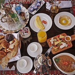 تشمل قائمة الطعام حلويات إماراتية و الكريم كرمل و الكعك و الكاسترد، و تتميز أطباق المطعم بكمياتها الكبيرة.
