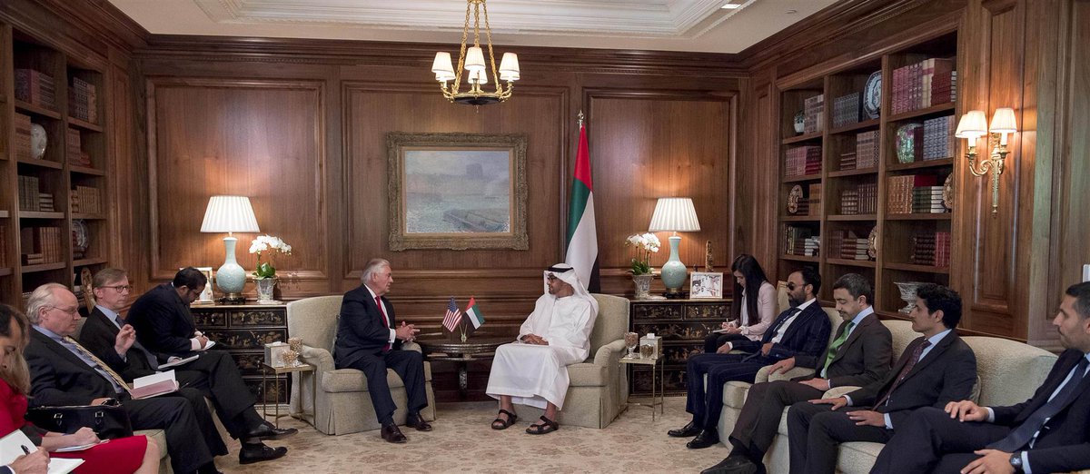 بحث صاحب السمو الشيخ محمد بن زايد آل نهيان ولي عهد أبوظبي نائب القائد الأعلى للقوات المسلحة اليوم خلال زيارته لواشنطن مع ريكس تيلرسون وزير الخارجية الأميركي علاقات الصداقة والتعاون بين دولة الإمارات العربية المتحدة والولايات المتحدة الأميركية والسبل الكفيلة بتطويرها وتنميتها بما يخدم مصالح البلدين الصديقين.