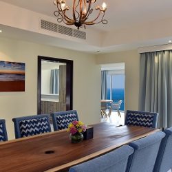 يتميز المنتجع بموقعه الخلاب على الخليج العربي و يضم 24 فيلا فاخرة مكونة من ثلاثة و أربع غرف ذات تصاميم حديثة و مساحات واسعة و أحواض سباحة مجهزة بنظام تدفئة و تبريد و إطلالاته بانورامية على الحديقة الخارجية و على شاطئ البحر الممتد على الخليج العربي بالإضافة إلى غرف خاصة بالأطفال مزودة بالعديد من الألعاب المثيرة منها لعبة “البلاي ستيشن” الشهيرة.
