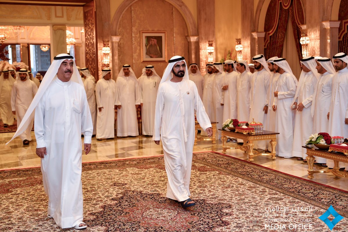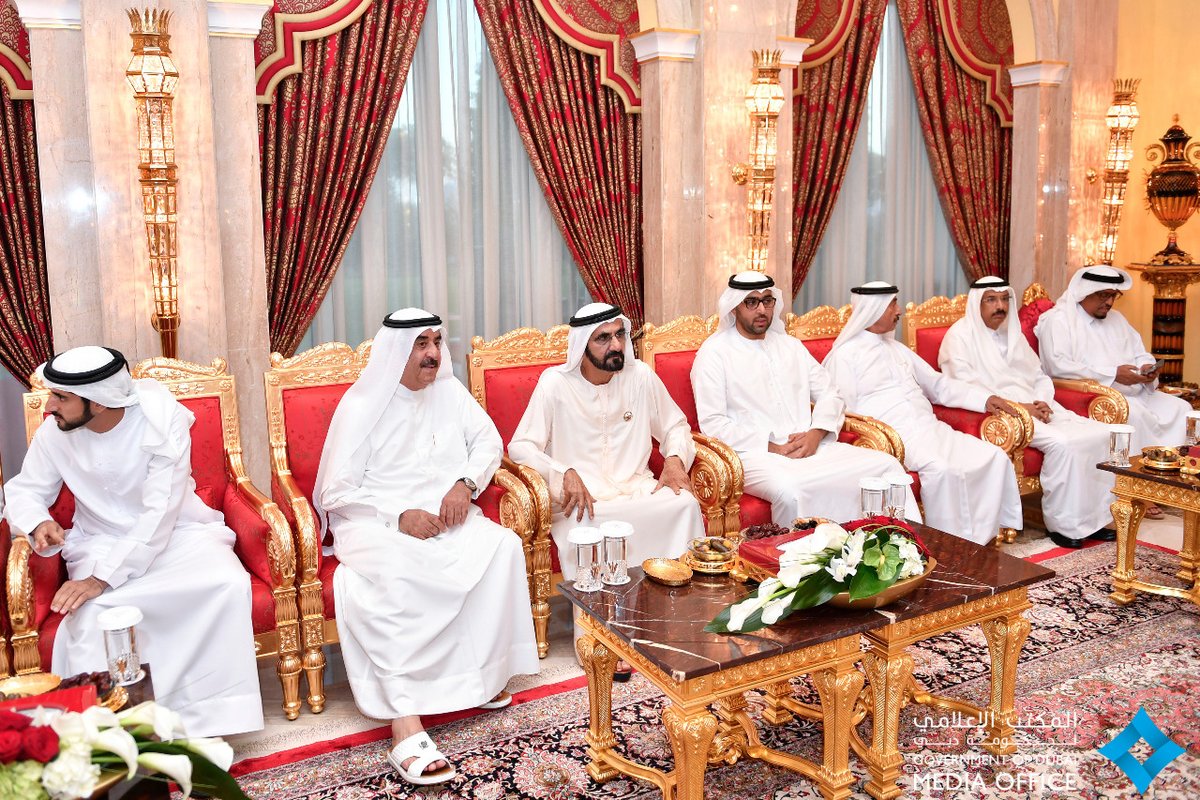 وفي الأثناء تقبل صاحب السمو نائب رئيس الدولة رئيس مجلس الوزراء حاكم دبي التهاني والتبريكات بهذه المناسبة المباركة من أعيان البلاد وأصحاب المعالي الوزراء ورؤساء ومديري المؤسسات والدوائر الحكومية والمتقاعدين العسكريين والمدنيين متمنين لسموه دوام الصحة والعافية والعطاء في شهر الخير شهر الرحمة والمغفرة والتسامح وراجين الله تبارك وتعالى أن يحفظ قيادتنا المعطاءة ودولتنا العزيزة من كل مكروه وشر.
