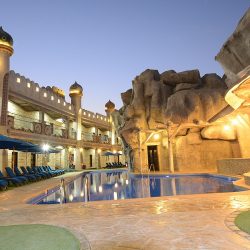 و يمكن أيضاً الاستمتاع بتجربة مميزة عند الإقامة في غرف المنتجع التي يصل عددها إلى 56 و المجهزة بشكل حديث و مصممة بديكور فاخر وحمامات رخامية، و يضم المنتجع حوض سباحة يشمل حوض سباحة للأطفال و العاب مائية و شلالات بجوار الغرفة مباشرة.