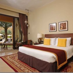 يمكن للنزلاء الاستمتاع بإقامة مميزة في غرف الفندق الفخمة بالإضافة إلى قوائم الطعام الشهية المقدمة على مدار الساعة في مطعم البادية . بإمكان الضيوف قضاء عطلة مميزة في غرف وأجنحة الفندق المجهزة تجهيزاً كاملاً حيث تشمل تلفاز و محطات تحضير القهوة و الشاي و شرفات واسعة ذات إطلالة رائعة على الكثبان الرملية لصحراء الربع الخالي.