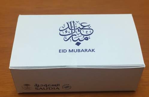 تشارك الخطوط السعودية ضيوفها بهجة عيد الفطر السعيد على متن طائراتها في كافة رحلاتها الداخلية والدولية يوم الأحد 1 شوال 1438هـ الموافق 25 يونيو 2017م وذلك ببث تكبيرات العيد وتقديم شوكولاتة (جوديڤا) الفاخرة لضيوفها ابتهاجا بالعيد .