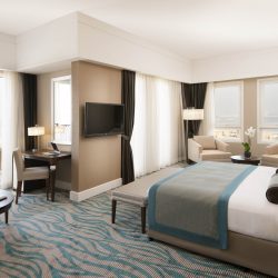 يوفر الفندق خدماتٍ 5 نجوم مثالية للاسترخاء بعيداً عن ضوضاء المدينة. وتشمل غرفاً وأجنحة فخمة التصميم، وأنشطة ترفيهية مميزة، بالإضافة إلى إطلالة ساحرة على الخليج العربي. كما يقدم الفندق مجموعة متنوعة من الأطباق والمرطبات على مدار اليوم.