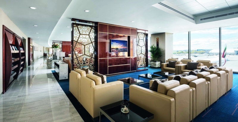 وصممت صالة طيران الإمارات وفق أسلوب عصري وحديث، وتقع في الطابق العلوي من المبنى E مقابل البوابة 11، وتستوعب 123 مسافراً. وروعي في تجهيزها توفير أرقى مستويات الفخامة والراحة، إذ تضم مرافق تطل على المطار ومناطق للجلوس والاسترخاء ومشاهدة التلفزيون عبر شاشات مسطحة عريضة ومصلى، وتبلغ مساحتها 695 متراً مربعاً. وتوفر الصالة بالإضافة إلى ذلك منتجات عضوية للعناية بالبشرة من العلامة التجارية الإيرلندية فويا، كريمات وغسولات لليدين والجسم والشعر.