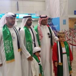 إلى ذلك احتفلت «إقامة دبي» باليوم الوطني السعودي عبر إصدار ختم خاص لهذه المناسبة بمطارات دبي يحمل شعار «معاً أبداً»، فيما شاركت شركتا «اتصالات» و«دو» للاتصالات من خلال تغيير اسم شبكة الهاتف المحمول إلى «الإمارات والسعودية معاً».