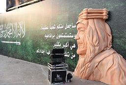 اما في جدارية الرسم الحر ابدع الرسام خالد ممدوح ابوطالب في رسم رموز الاحتفال باليوم الوطني حيث برزت رسومات مؤسس المملكة الملك عبدالعزيز طيب الله ثراه الى جانب صورة الملك سلمان بن عبدالعزيز خادم الحرمين الشريفين وصورة لولي عهده الامين الامير محمد بن سلمان ، وأشار ابوطالب الى انه بدأ الرسم منذ ان بلغ الثامنه من عمره واستمرت معه الهواية وطورها بالدورات ومتابعة المحترفين في الرسم مضيفا انه كان يشعر بالحماس والفخر وهو يرسم قيادات مملكتنا الحبيبة والتي رسمها بطريقة البوب آرت.