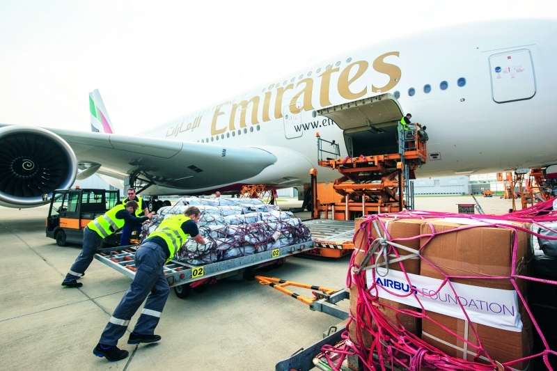 ومن جهة أخرى أتمت طيران الإمارات و«مؤسسة إيرباص» والمنظمة الخيرية غير الحكومية «ويلثونجرهيلف» عملية شحن مواد الإغاثة الطارئة من هامبورغ في ألمانيا إلى مستودع الأمم المتحدة للاستجابة الإنسانية في دولة الإمارات في مقره في دبي.