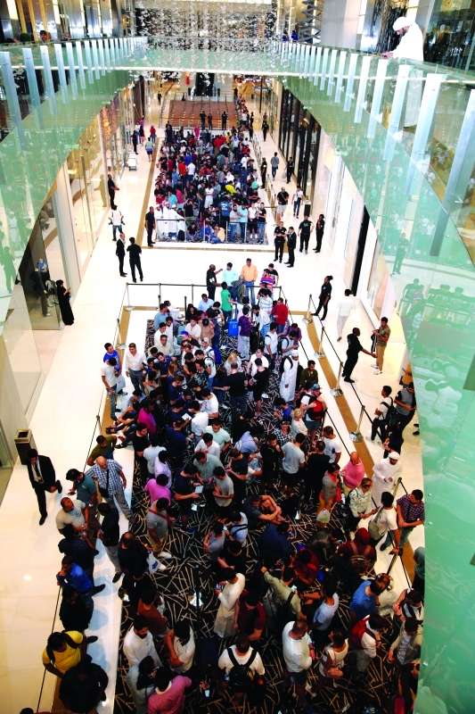 شهد «دبي مول» في الساعات الأولى من صباح أمس إقبالاً كبيراً من قبل المستهلكين الذين اصطفوا في طوابير لشراء أو استلام هاتف «آيفون 10» من متجر آبل الذي افتتح أبوابه لعشاق آبل في تمام الثامنة صباحاً.