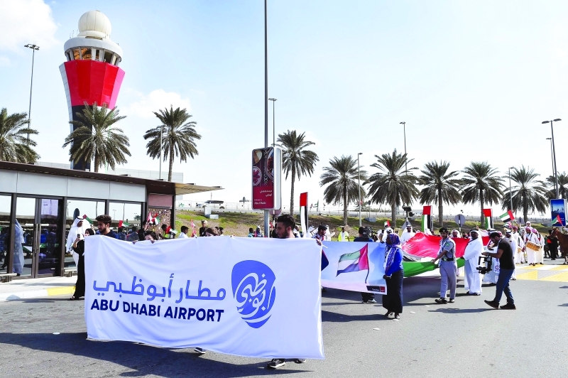 وأتيحت للمسافرين عبر المطار خلال إجازة اليوم الوطني فرصة التعرف والاستمتاع بالتقاليد الإماراتية، بالإضافة لمسيرة احتفالية نظمت في أوقات عدة خلال عطلة نهاية الأسبوع وغطت كافة أرجاء المطار. كما شارك الشركاء الاستراتيجيون في المطار ضمن هذا الاحتفال من خلال مسابقة تصميم أجمل عربة داخلية، وذلك لإضفاء روح الاتحاد بين كافة الجهات العاملة في مطار العاصمة.