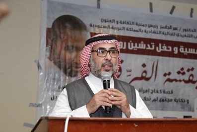ثم القى الدكتور عمر الجاسر كلمة عبر فيها عن سعادته واعتزازه أن يكون ضمن هذه الكوكبة الثقافية والأدبية من اشقائنا بالجالية التشادية كما أوضح ان الجمعية بيت للجميع وترحب بجميع المواهب التي تعيش على أرض السعودية أرض العطاء وأن الثقافة والفن لا يعرف الجنسيات والكل متساوي في الفن والابداع داخل الجمعية كما قدم شكره لكل الفائمين على حفل التدشين .