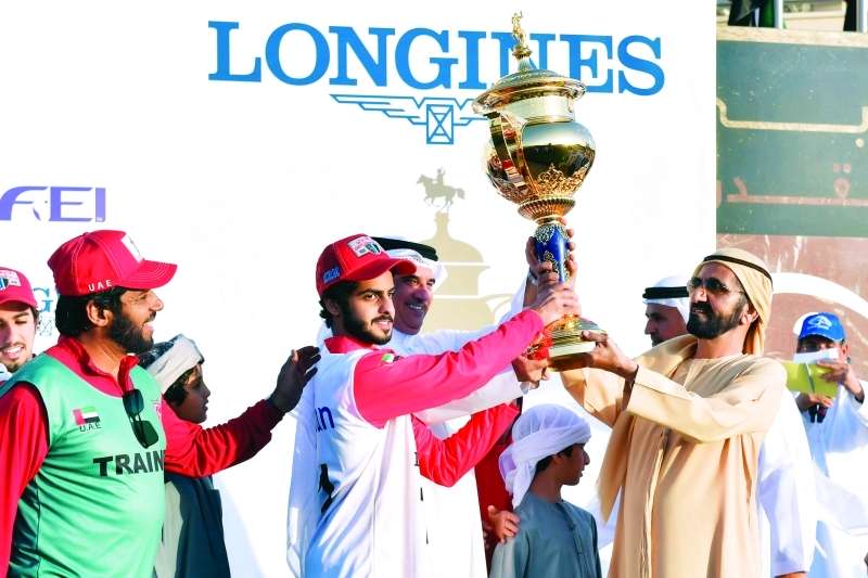 توّج صاحب السمو الشيخ محمد بن راشد آل مكتوم، نائب رئيس الدولة رئيس مجلس الوزراء حاكم دبي، رعاه الله، الفارس سيف المزروعي بطلاً للسباق الرئيس لكأس سموه للقدرة لمسافة 160 كيلومتراً، في مدينة دبي الدولية للقدرة بسيح السلم، وبمشاركة نخبة من فرسان دولة الإمارات ودول العالم. وأكد سموه أن الكأس ناموس لكل العرب، مشيراً إلى أن ضيوف الدولة وكذلك إخواننا في الإمارات كانوا سعيدين بالمهرجان، وهذا هدفنا، ونريد للجميع أن يشارك فيه، وتعم الفرحة الجميع. وأشاد سموه بأداء الخمسة الأوائل الذين أبدعوا في السباق الكبير، وقال سموه إن البطل «نابولي ديل ما» هو من خيول الدرجة الأولى، وكذلك بقية الخيول التي جاءت في المراكز الخمسة الأولى التي فاجأتنا في السباق.