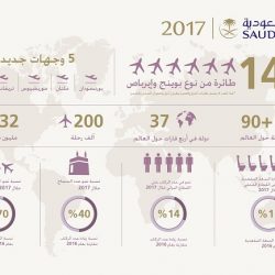 وأبان التقرير الختامي لـ”السعودية” لعام 2017م نقل أكثر من (32،16) مليون ضيف خلال العام وهو رقم قياسي في إجمالي عدد الضيوف خلال عام واحد وبارتفاع تبلغ نسبته (8%) مقارنة بالعام السابق، وسجل القطاع الدولي قفزة كبيرة في النمو حيث ارتفع عدد الضيوف بنسبة (14%)، كماشهد العام عام 2017م.طرح أكبر عدد من المقاعد خلال عام واحد في القطاع الداخلي بزيادة 2مليون مقعد مقارنة بالعام السابق مما أسهم في تلاشي أزمة الحجوزات إلى حد كبير.