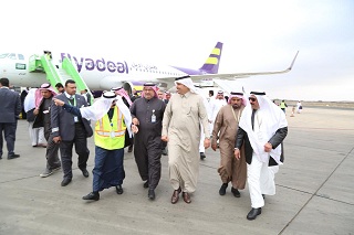 أما داخل صالة الوصول بالمطار فقد أقيم حفل رسمي، بحضور سعادة المهندس صالح بن ناصر الجاسر، رئيس مجلس إدارة «طيران أديل» مدير عام الخطوط الجوية العربية السعودية والأستاذ فهد العدواني مدير عام المطارات الجنوبية، والسيد كون كورفياتس الرئيس التنفيذي لـ”طيران أديل”، إضافةً الى عدد من مسؤولي ومنسوبي المطار والإعلاميين، وبمشاركة فرقة شعبية عرضت فلكلور فنياً من تراث منطقة عسير.