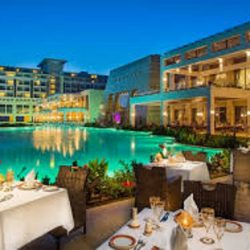 يوفر المنتجع الاطباق التي تلائم كافة الأذواق ، حيث يُمكنكم تذوق النكهات الفاخرة للمأكولات الإيطالية والفرنسية ومن الشرق الأقصى والأطباق التركية. كما يوجد 12 حانة في الموقع تُقدم الكوكتيلات الرائعة والعصائر الصحية .