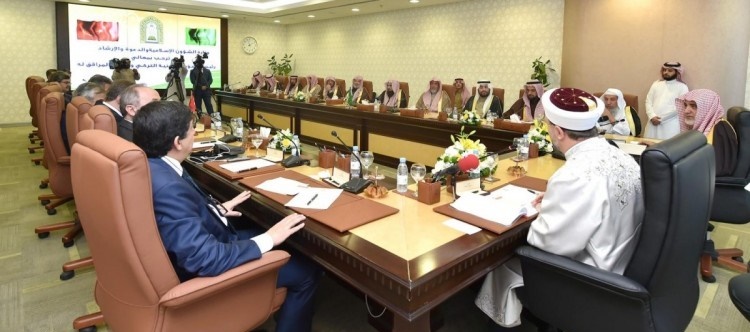 وأشار الدكتور أرباش إلى حديث الوزير عن زيارة الرئيس السابق للشؤون الدينية في تركيا د. محمد قورماز للمملكة، وما تم خلالها من اتفاقات بدأ العمل فيها، وقال: إننا نريد المواصلة والاستمرار، وإيجاد صيغ جديدة للتعاون في هذا السياق، وبالنسبة لما أشار إليه معالي الشيخ صالح آل الشيخ من اللجنة المشتركة فنتمنى أن تكمل مسيرتها كما كانت في السابق وأن ندعم الأعمال التي يقومون بها، وأن نناقش قضايا لم نناقشها في السابق لنوسع دائرة التعاون فيما بيننا وأبان معاليه أن هناك مشكلة تواجه رئاسة الشؤون الدينية في تركيا وهي قلة المتحدثين باللغة العربية، وقلة الدارسين للعلوم الإسلامية بشكل حقيقي ومتخصص، وقال إن الطلاب الأتراك الذين درسوا في جامعات المملكة لهم إسهامات كبيرة في تركيا في الفترة الماضية، وحاليًا نتمنى أن يزيد عدد الطلاب الذين يدرسون في الجامعات السعودية ولا سيما في العلوم الشرعية حتى يرجعوا لبلادهم ويقدموا الخدمات التي نؤملها في المستقبل القريب، مشيرًا إلى أنه لا يخفى أهمية دراسة العلوم الشرعية باللغة العربية مقارنة بدراستها بلغات أخرى غير العربية وأوضح أن لديهم برنامجاً اسمه “مولانا” يتم فيه تبادل الطلاب والأساتذة لمدة عام أو فصل واحد مما يقوي الطالب في لغته ويوسع مداركه في أمور كثيرة.. معربًا عن ترحيب الرئاسة الدينية بمن يرغب من السعوديين في الاطلاع على اللغة التركية والحضارة التركية بشكل عام عبر البرنامج المشار إليه. وأشار إلى أن لديهم في الرئاسة ما يسمى بمعاهد الاختصاص العليا للأئمة والوعاظ وتدريب المفتين، وهو برنامج مدته سنتان في ثمانية مراكز يقدمون من خلالها الخدمات اللازمة للعاملين في رئاسة الشؤون الدينية، منوها إلى أن هؤلاء أخذوا قبل ثلاث سنوات فصلاً دراسياً في جامعة أم القرى لمدة أربعة أشهر، شاكرًا المملكة ومسؤوليها على استضافة هؤلاء الطلاب خيرَ استضافة وتطرق الدكتور أرباش ــ في سياق كلمته ــ إلى الثلاثة ملايين ونصف المليون من اللاجئين السوريين الذين يعيشون في تركيا وأنهم بحاجة إلى التعاون مع المملكة بخصوص ما يمكن تقديمه لهم من خدمات ولا سيما في الجانب التعليمي وقال المسؤول التركي في ختام كلمته أكرر شكري وتقديري لمعاليكم، وأجدد دعوتكم إلى بلدكم أنقرة؛ لاستكمال ما بدأناه، مزجياً شكره لخادم الحرمين الشريفين وسمو ولي عهده على ما يقدمونه من توجيهات في إطار التقارب بين البلدين وفيما يتعلق بخدمة حجاج بيت الله الحرام واصفاً هذه الخدمات بالجليلة والعظيمة.