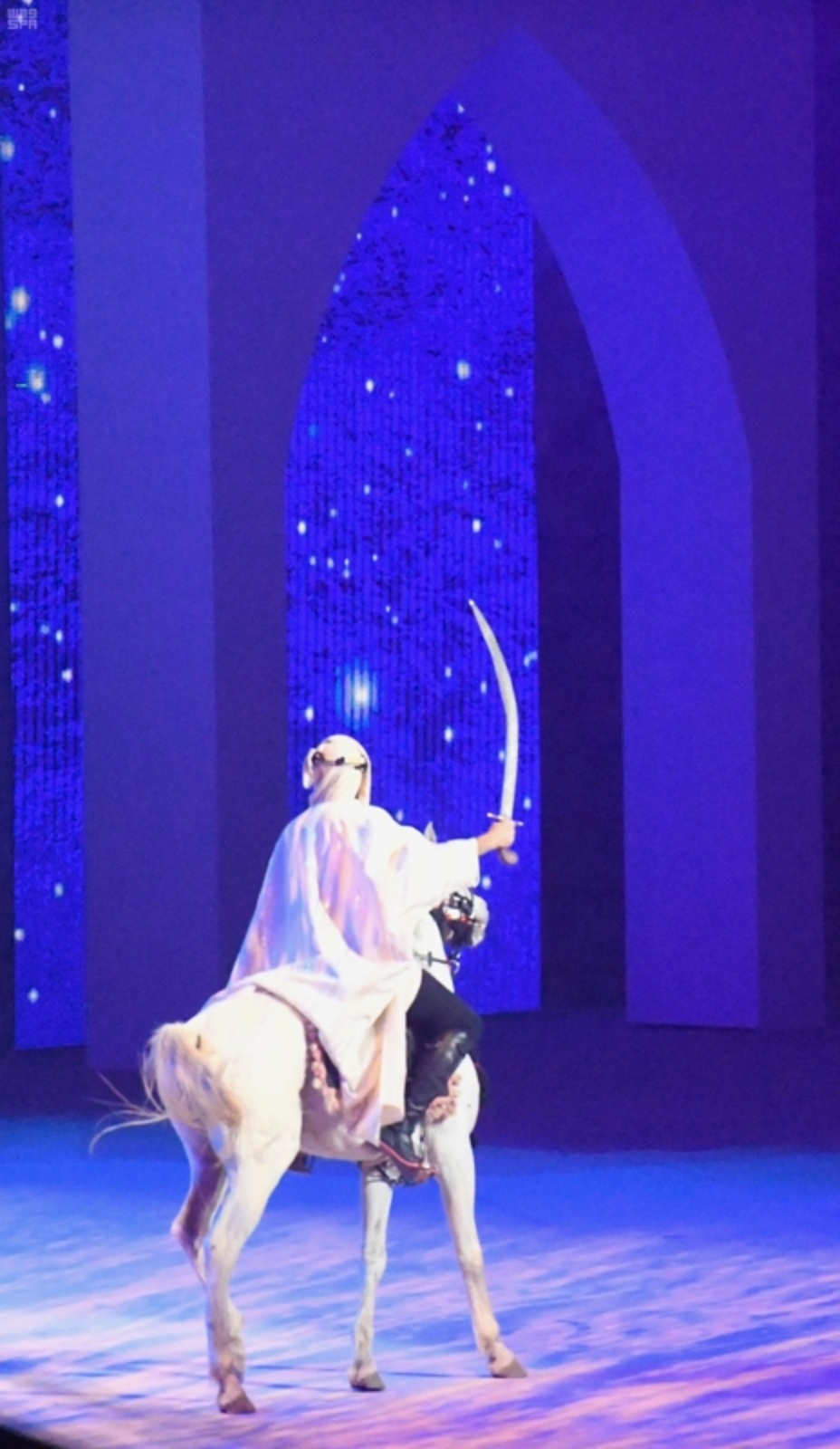 بعد ذلك بدأ العرض الفني “الأوبريت” بعنوان ” أئمة وملوك ” رؤية وأشعار صاحب السمو الملكي الأمير بدر بن عبد المحسن بن عبد العزيز، وألحان ياسر أبو علي وإشراف ومعالجة درامية مؤسسة بدر بن عبد المحسن الحضارية وأداء الفنانين محمد عبده ورابح صقر وعبد المجيد عبد الله وراشد الماجد وماجد المهندس وراشد الفارس، فيما أدى المشاهد الدرامية عدد من الممثلين السعوديين.
