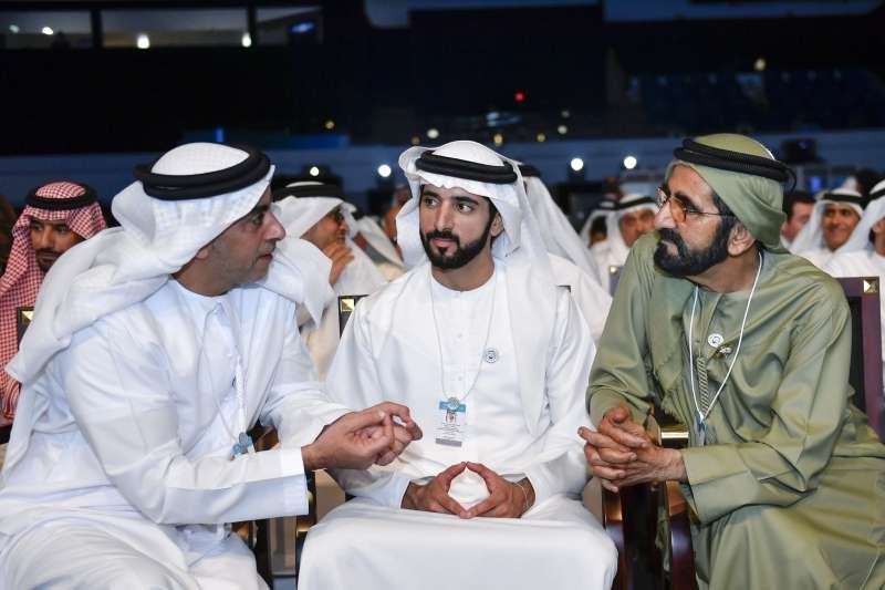 وسمو الشيخ منصور بن محمد بن راشد آل مكتوم، ومعالي محمد بن عبدالله القرقاوي، وزير شؤون مجلس الوزراء والمستقبل رئيس القمة العالمية للحكومات، ولفيف من الشخصيات العربية والعالمية وممثلي الحكومات المشاركة في الدورة السادسة من القمة.
