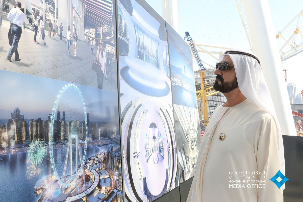 وتجوّل صاحب السمو الشيخ محمد بن راشد ومرافقوه في أرجاء الجزيرة .. حيث زار سموه موقع “عين دبي” التي دخلت المراحل النهائية من تنفيذها وستكون مع اكتمال بنائها العجلة الترفيهية الأكبر والأطول من نوعها في العالم بارتفاع يناهز 210 أمتار لتقدم معلماً جديداً يضاف إلى معالم الجذب السياحي الأساسية المنتشرة في دبي.. حيث ستتكامل مع باقي مكونات المنطقة الحيوية المجاورة للمشروع والمتمثلة في “جي بي آر” و”مرسى دبي” في تشكيل نقطة جذب تستقطب الزوار من داخل وخارج الدولة.