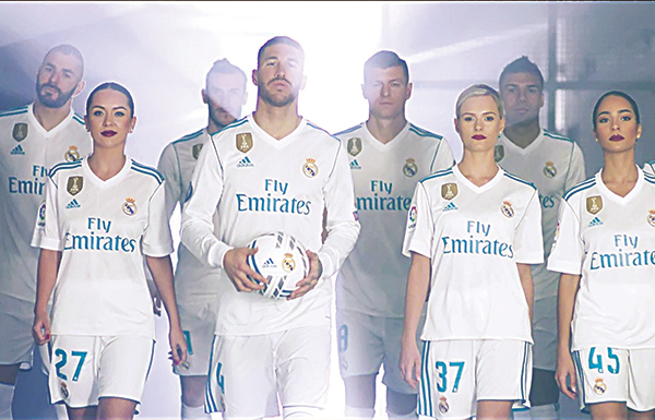 وخلال الفيلم القصير، لاحظ نجوم النادي المدريدي المهارات المتعددة غير العادية التي تتمتع بها مضيفات طيران الإمارات في كرة القدم، وهن يؤدين أدوارهن على الوجه الأكمل، قبل أن يصاب بن زيمة بالذهول وهو يرى وجوهاً جديدة ترافق لاعبي فريقه في حجرة تغيير الملابس، وذلك في مشهد تالٍ.