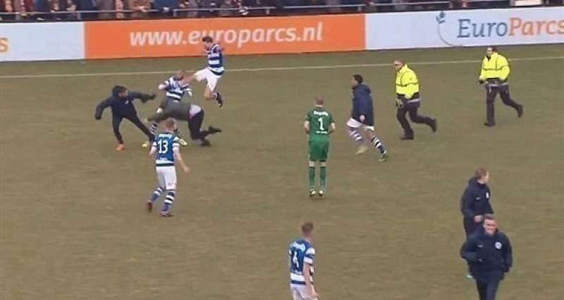 اعتدى مشجعون لفريق جو أهيد إيغلز على لاعبي المنافس غرافشاب، عقب مباراة في دوري الدرجة الثانية الهولندي لكرة القدم.