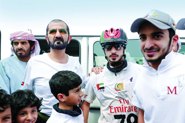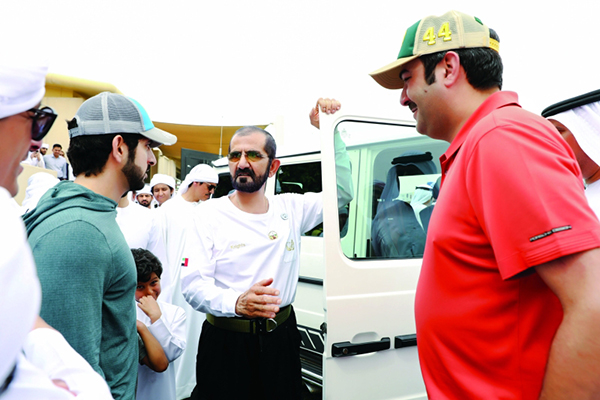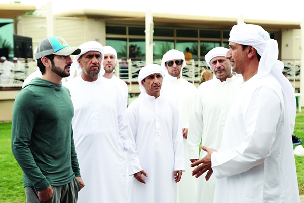 حمدان بن راشد خلال متابعته السباق