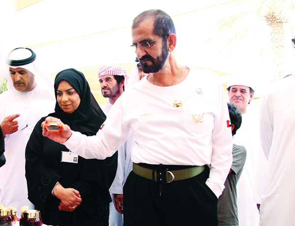 تفقد صاحب السمو الشيخ محمد بن راشد آل مكتوم نائب رئيس الدولة، رئيس مجلس الوزراء، حاكم دبي «رعاه الله» يوم أمس على هامش السباق في مدينة دبي الدولية للقدرة بسيح السلم، المعرض الذي أقامته وزارة تنمية المجتمع لأصحاب الهمم واشتمل على أعمال مراكز أصحاب الهمم. وتضمن المشغولات اليدوية التي حازت الإعجاب والتقدير.