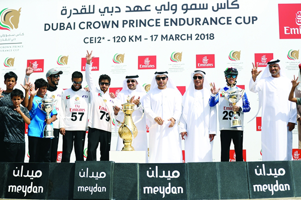 عقب ختام السباق، قام الشيخ ماجد المعلا نائب رئيس أول طيران الإمارات لدائرة العمليات التجارية، واللواء الدكتور أحمد ناصر الريسي رئيس اتحاد الإمارات للفروسية، والدكتور غانم الهاجري الأمين العام لاتحاد الفروسية، ومحمد عيسى العضب المدير العام لنادي دبي للفروسية بتتويج أبطال السباق، حيث تسلم البطل سعيد الخياري كأس المركز الأول، ونال أحمد الناصري كأس المركز الثاني، وتسلم الفارس عبد الله غانم المري كأس المركز الثالث.