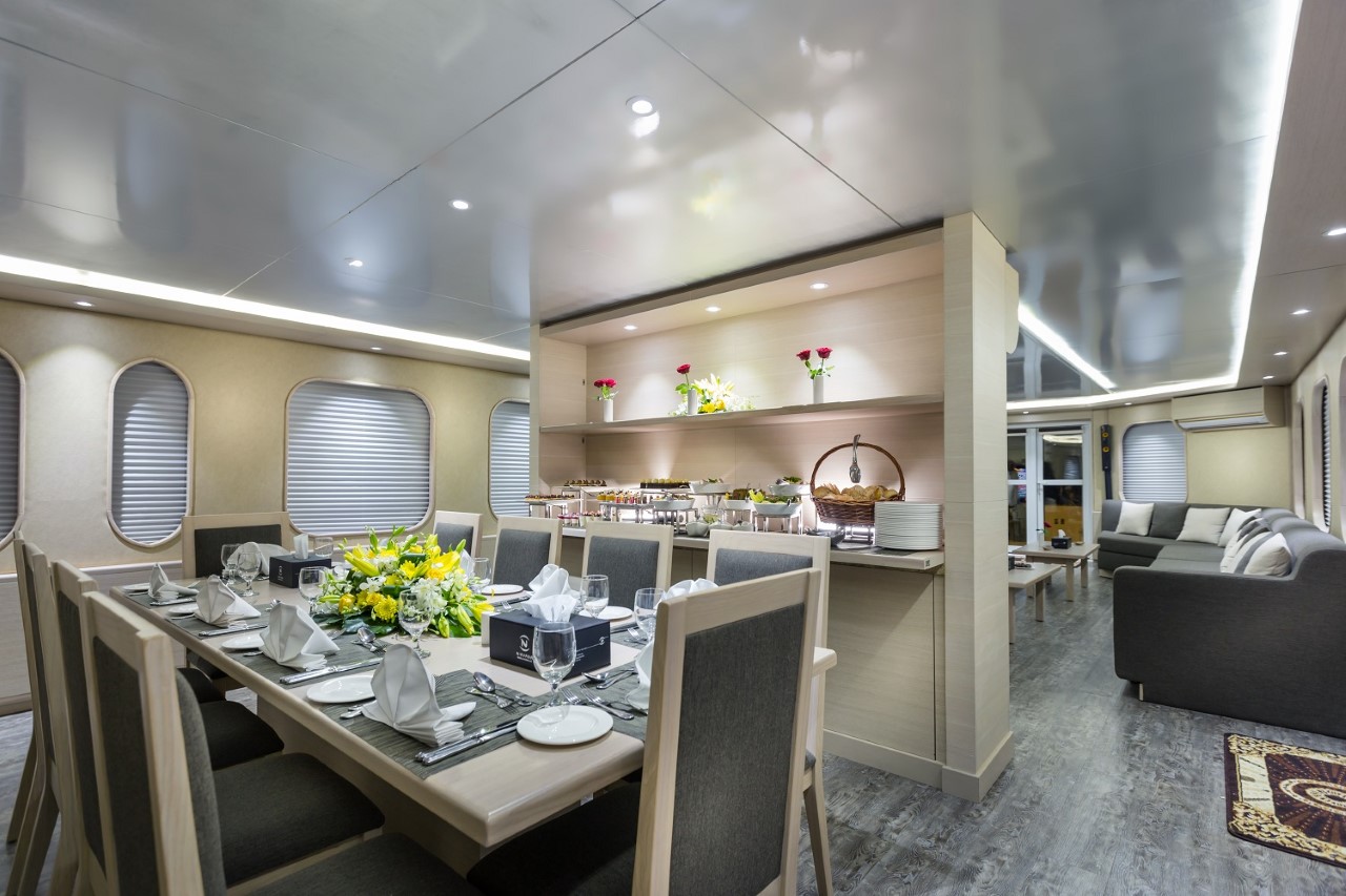 أبحر من مرسى الكورنيش على متن يخت “إم آند إتش” الفاخر، المُجهّز بصالون مكيّف مع أرائك مريحة، لتتعرّف على مفهوم الترفيه الراقي، فبسعر يصل إلى 275 درهم فقط للإفطار و 175 درهماً للسحور، ستستمتّع بقضاء وقت رائع لا يُنسى في هذه التجربة الفاخرة التي تمزج بين الإطلالات الرائعة على ناطحات السحاب في أبوظبي وشاطئ الكورنيش الشهير، وأروع الألحان التقليدية لعزف العود الحيّ، في أجواء مريحة ومُنعشة تمزج الديكورات والتصاميم التقليدية مع لمسات المعاصرة.