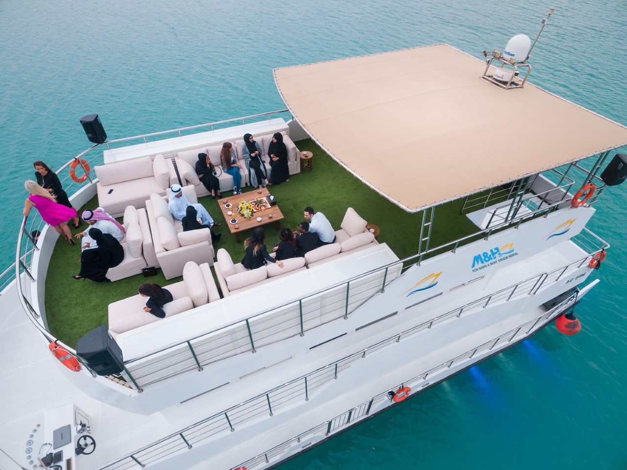 وتعليقاً على هذه التجربة الفريدة الفاخرة، أوضحت السيدة صوفي لوما ، مديرة المبيعات والتسويق في شركة “إم آند إتش” للرحلات البحرية: “مع هذا المفهوم الرمضاني الجديد، الذي يُعدّ الأول من نوعه في أبو ظبي، نأمل أن نمنح ضيوفنا تجربة لا تُنسى خلال هذا الموسم، تحفل بكرم الضيافة العربية الحقيقية للاحتفاء بشهر رمضان الكريم، حيث سيتمكّن الضيوف من الاستمتاع بالمناظر البانورامية للمحيط النقي بصحبة أحبائهم مع تناول أشهى الأطباق الرمضانية المُتميّزة. “