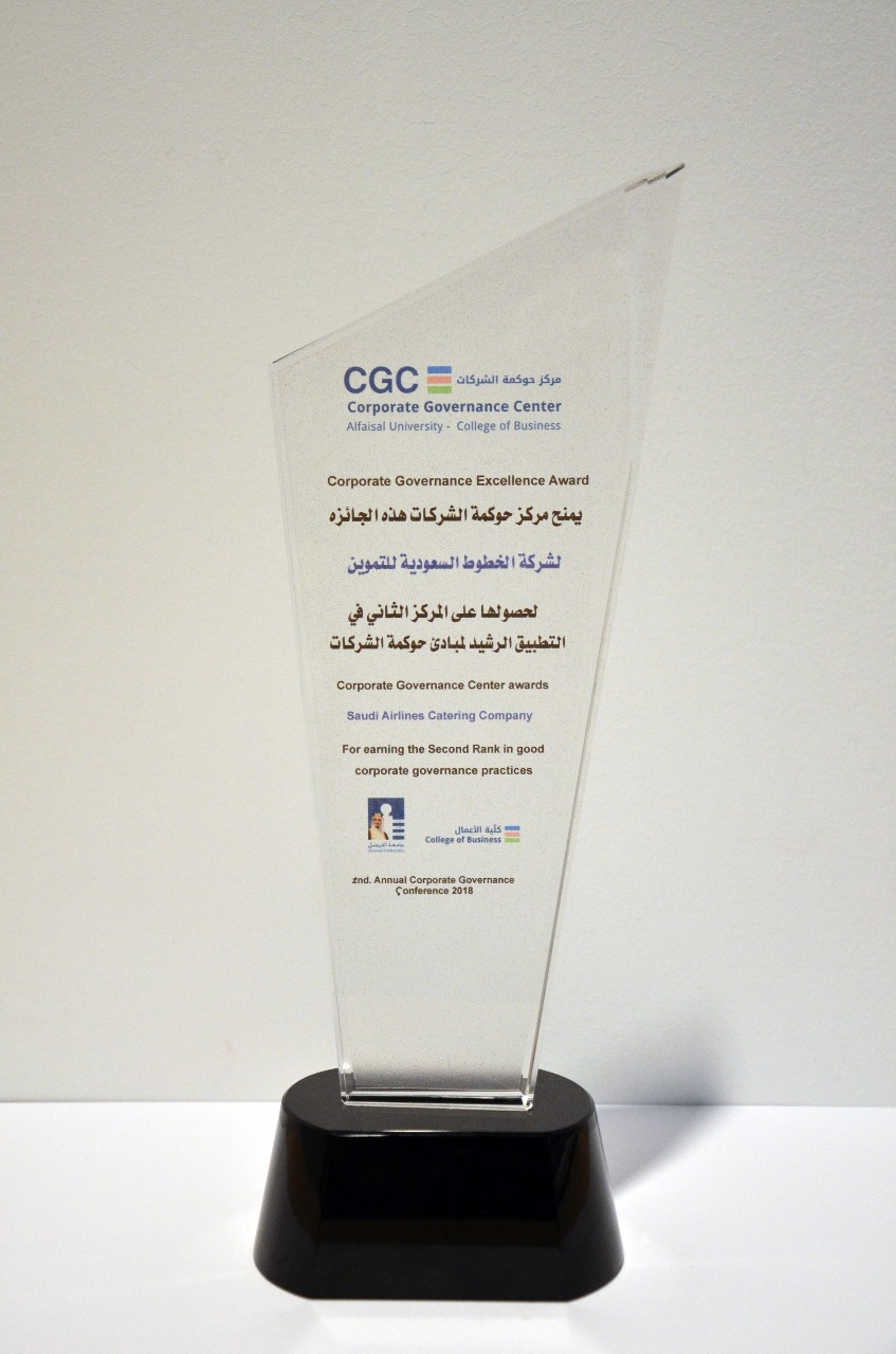 توجت شركة الخطوط السعودية للتموين وللعام الثاني على التوالي بجائزة أفضل ممارسات حوكمة الشركات في المملكة، التي يقدمها مركز أبحاث حوكمة الشركات بكلية إدارة الأعمال بجامعة الفيصل بالتعاون معهيئة السوق المالية، والهيئة السعودية للاستثمار، ووزارة التجارة والاستثمار. حيث فازت الشركة بالمركز الثاني في مؤشر حوكمة الشركات (Corporate Governance Index CGI)من بين ١٧١ شركة مساهمة مدرجة في سوق الأسهم السعودية، مما يمثل اعترافاً هاماً بممارسة الشركة لأفضل المعايير العالمية في مجال حوكمة الشركات.