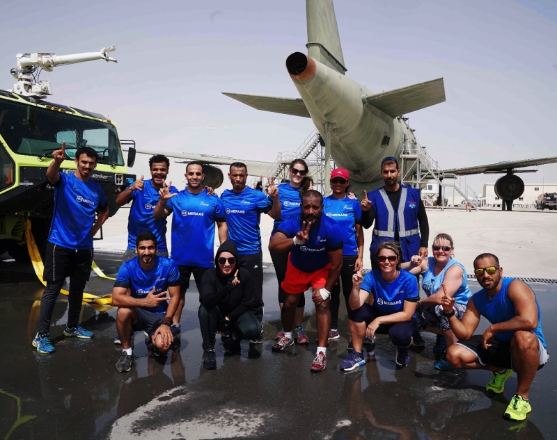 ونقل الفريق المكون من سبعة رجال وسبع نساء، جميعهم يعمل لدى المؤسسة في إدارات مختلفة كعمليات الجانب الجوي وخدمات الإطفاء، تدريباته من صالة الألعاب الرياضية التقليدية إلى منطقة تدريب خدمات الإطفاء في مطار دبي وورلد سنترال وتحت أشعة الشمس لمنح الفريق فرصة لاختبار قدراته القصوى والقيام بتمرينات مختلفة كدفع سيارة الإطفاء وسحب خراطيم الإطفاء في الوقت الذي استمرت فيه عمليات المطار كالمعتاد.