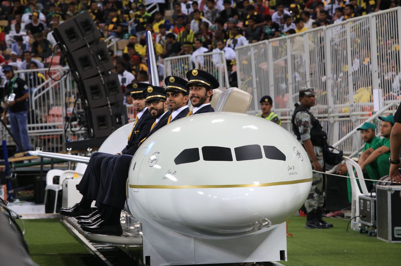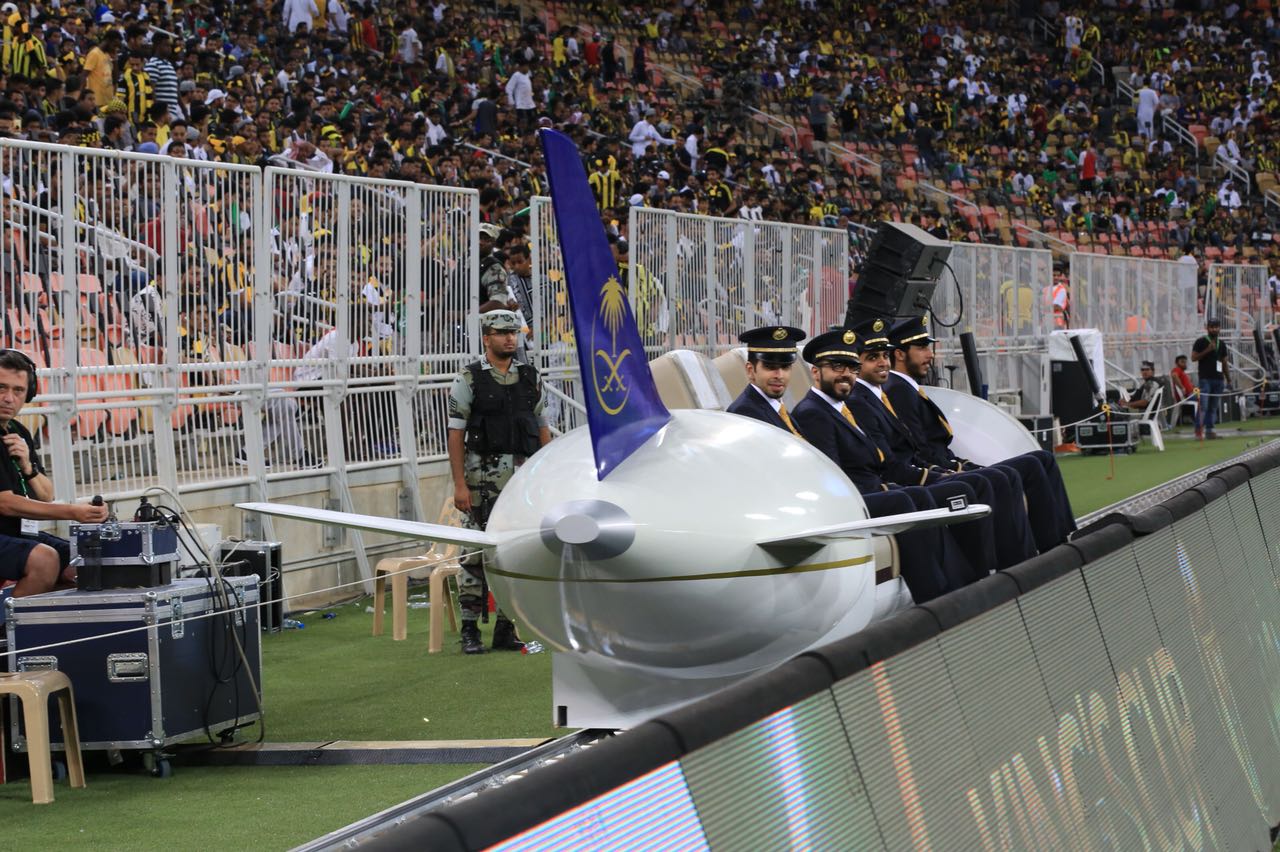 المبادرة العالمية الفريدة من نوعها في الملاعب السعودية “السعودية لاينر” هي عبارة عن طائرة تسير على قضبان وضعت في جنبات الملعب، حيث تتحرك تبعاً لحركة الكرة طوال فترة المباراة بطريقة انسيابية مثيرة، وتحمل الطائرة (4) ركاب .