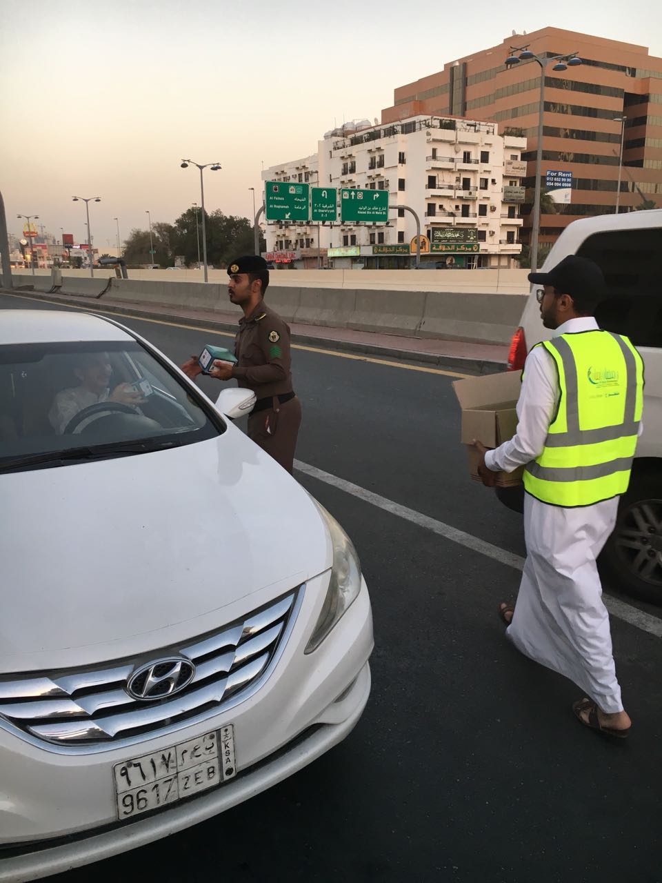 بتوجيه من مدير الادارة العامة للمرور اللواء محمد البسامي وتحت شعار ” رمضان يجمعنا معا بلا حوادث ” أطلق مدير ادارة مرور جدة العميد سليمان الزكري قبيل مغرب اليوم الجمعة حملة ” رمضان أمان ” وذلك بمحافظة جدة تمّ خلالها توزيع وجبات افطار على قائدي المركبات بمختلف الطرق وعند الاشارات والميادين عبر رجال المرور وبمشاركة متطوعي ومتطوعات المؤسسات المجتمعية.