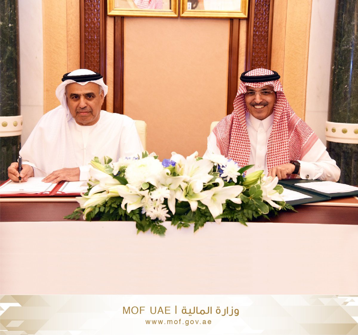 ووقع الاتفاقية معالي عبيد حميد الطاير وزير الدولة للشؤون المالية عن الجانب الإماراتي ومحمد بن عبدالله الجدعان وزير المالية عن جانب المملكة.