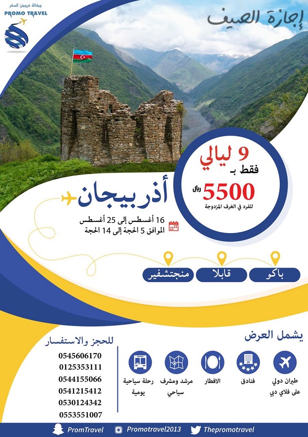 طرحت وكالة عروض السفر في السعودية عروضها السياحية خلال الصيف الي ( جورجيا وأذربيجان ) مؤكدة وجود متسع من الوقت بشأن الحجوزات الأخيرة