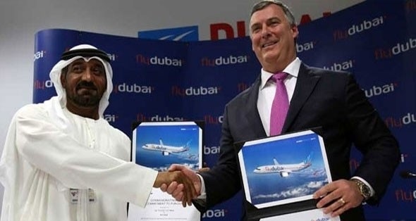 أعلنت شركة بوينغ الاميركية الاربعاء تلقيها طلبية من شركة “فلاي دبي” الاماراتية لشراء 225 طائرة للرحلات المتوسطة بمحركات جديدة من طراز 737 ماكس من بينها 175 طائرة مؤكدة، بقيمة اجمالية تبلغ 27 مليار دولار حسب قائمة الاسعار.