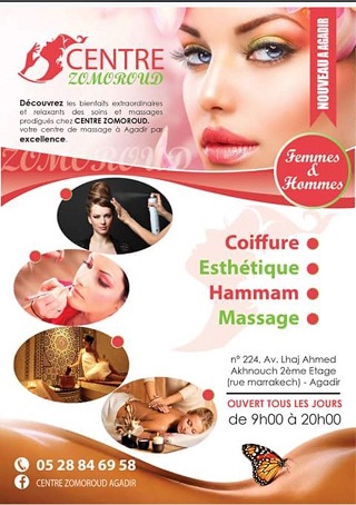 يوفر “ مركز زمورد ” الصحي في مدينة اكادير المغربية تجربة الحمام المغربي التقليدي التي تتبع عملية التنظيف الكامل للبشرة التي تبدأ بتعريض البشرة بالبخار و الذي يعد جزءاً أساسياً من العلاج .