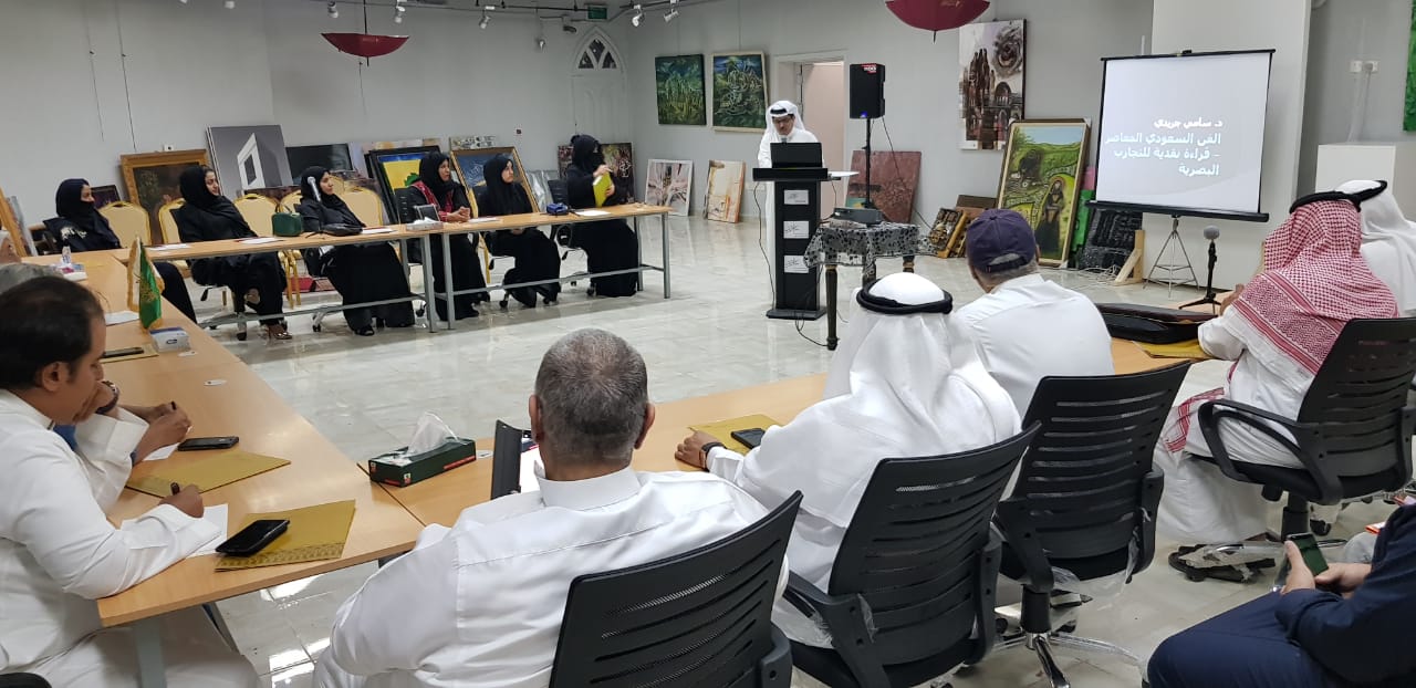 دشنت جمعية الثقافة والفنون في جدة مساء الثلاثاء بحضور مديرها الاستاذ محمد آل صبيح والفنان هشام بنجابي مدير الجمعية السعودية للفنون التشكيلة بجدة جسفت اولى ملتقيات الدراسات البصرية بمحاضرة عنوانها ” الفن السعودي المعاصر” قدمها المشرف على الملتقى الدكتور سامي جريدي.والذي بدأ محاضرته بشكره لجمعية الثقافة والفنون بجدة على هذه الخطوة الغير مسبوقة والتي بلا شك ستحدث نقلة نوعية على مستوى حركة الفنون البصرية