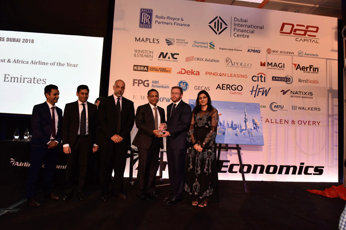 نالت طيران الإمارات، أكبر ناقلة جوية دولية في العالم، جائزة “ناقلة العام لمنطقة الشرق الأوسط وأفريقيا” ضمن جوائز “أفييشن 100” السنوية، التي تنظمها مجلة “إيرلاين إيكونوميكس”، والتي تكرم أفضل الناقلات الجوية أداءً، بالإضافة إلى أفضل الصفقات التمويلية والتأجيرية المبتكرة والناجحة التي تتم خلال العام. وقد جرى تسليم الجوائز خلال حفل عشاء المؤتمر السنوي 2018 الذي نظمته المجلة في دبي.