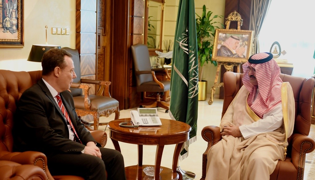 استقبل صاحب السمو الملكي الأمير مشعل بن ماجد بن عبدالعزيز محافظ جدة بمكتبه صباح اليوم الأربعاء 13/3/1440 هـ ، القنصل العام البريطاني بجدة السيدسيف الدين أشر.