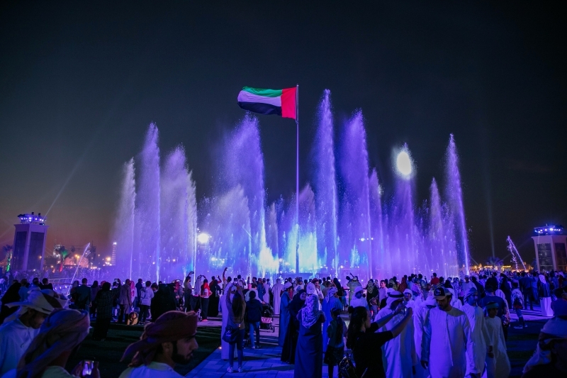 وشهد الجناح الإماراتي مشاركة فرق «العيالة» و«الحربية» التي جذبت آلاف الزوار الذين شارك العشرات منهم أفراد الفرق في «الرزفات» والأهازيج الشعبية الإماراتية، تعبيراً عن فرحتهم بالمناسبة الغالية. وأضاءت الألعاب النارية الضخمة سماء الوثبة لفترة زمنية أطول من المعتاد بألوانها وأشكالها المختلفة، التي أمتعت الزوار على وقع الأغنيات الوطنية.
