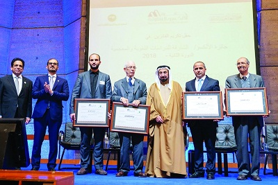 معالجة لغوية حاسوبية». وحضر حفل التكريم، إلى جانب صاحب السمو حاكم الشارقة، كل من معالي حسين بن إبراهيم الحمادي وزير التربية والتعليم، وعبد الله محمد العويس رئيس دائرة الثقافة، وأحمد بن ركاض العامري رئيس هيئة الشارقة للكتاب، ومحمد حسن خلف مدير عام مؤسسة الشارقة للإعلام، ومحمد إسماعيل السهلاوي نائب سفير الدولة لدى فرنسا، ونخبة من علماء اللغة العربية وكبار مسؤولي المجامع اللغوية والعلمية ومراكز اللغة العربية في الوطن العربي.